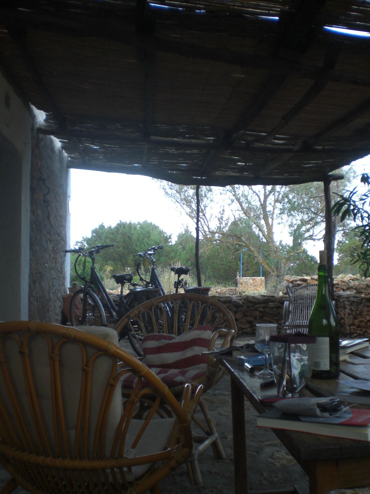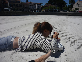 Ahora disfrutando de este feliz dejeneur: café con leche y tostadas con aceite y sal, rodeada de playa moteada a gotas. El cielo blanco como un sorbito de leche. A lo lejos la isla y esa casa que conozco.