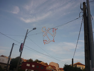 Aún de día a las once de la noche, la plaza de la virgen de los pescadores empieza a llenarse de globos, de azucar rosa de ese que se pega en todas partes y de la triste cara de los que accionan los autos de choque y tiovivos a pesar de su sonrisa. Los padres llevan a los niños a caballito y no te puedes esconder de las miradas ni de la música popular.