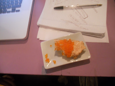 Amasas el arroz con las manos y lo colocas en el alga siempre procurando que los bordes queden libres para que el rollo quede sellado, como un sobre bien guardado que tiras al mar para no volver a ver jamás.